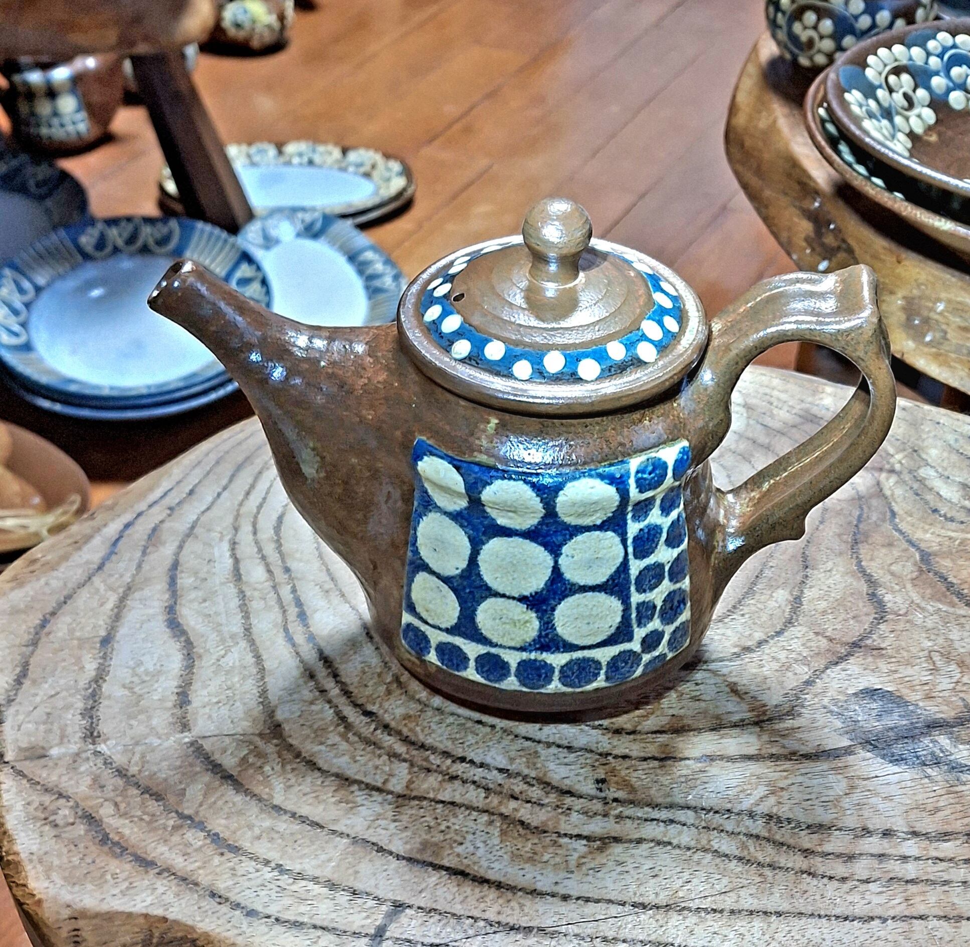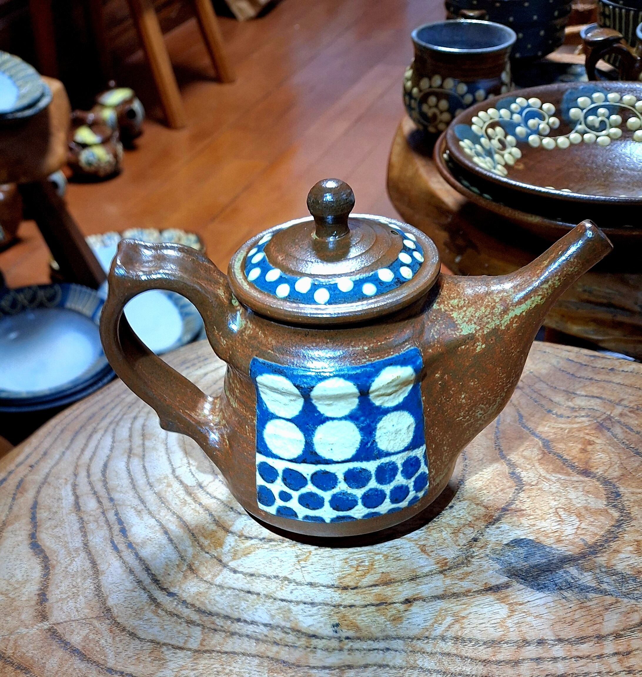 注ぎ口から取っ手までの長さが21センチ高さ15センチ口の直径が8センチのポットです ずっしりとした造りです