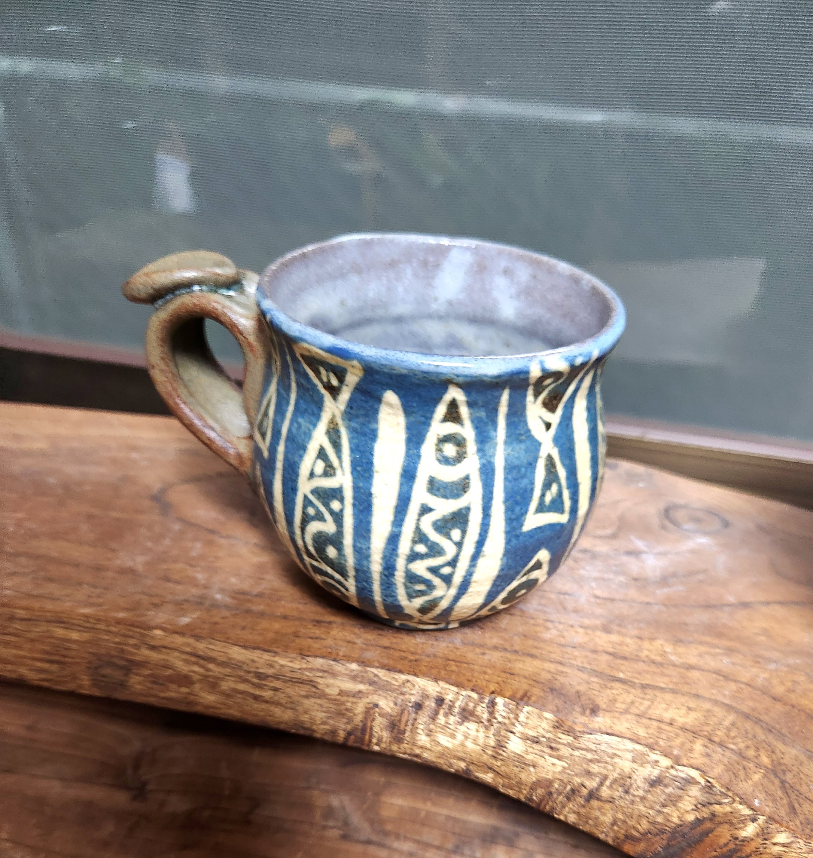 カップの内側はサトウキビ灰で拵えました白釉が施してあります