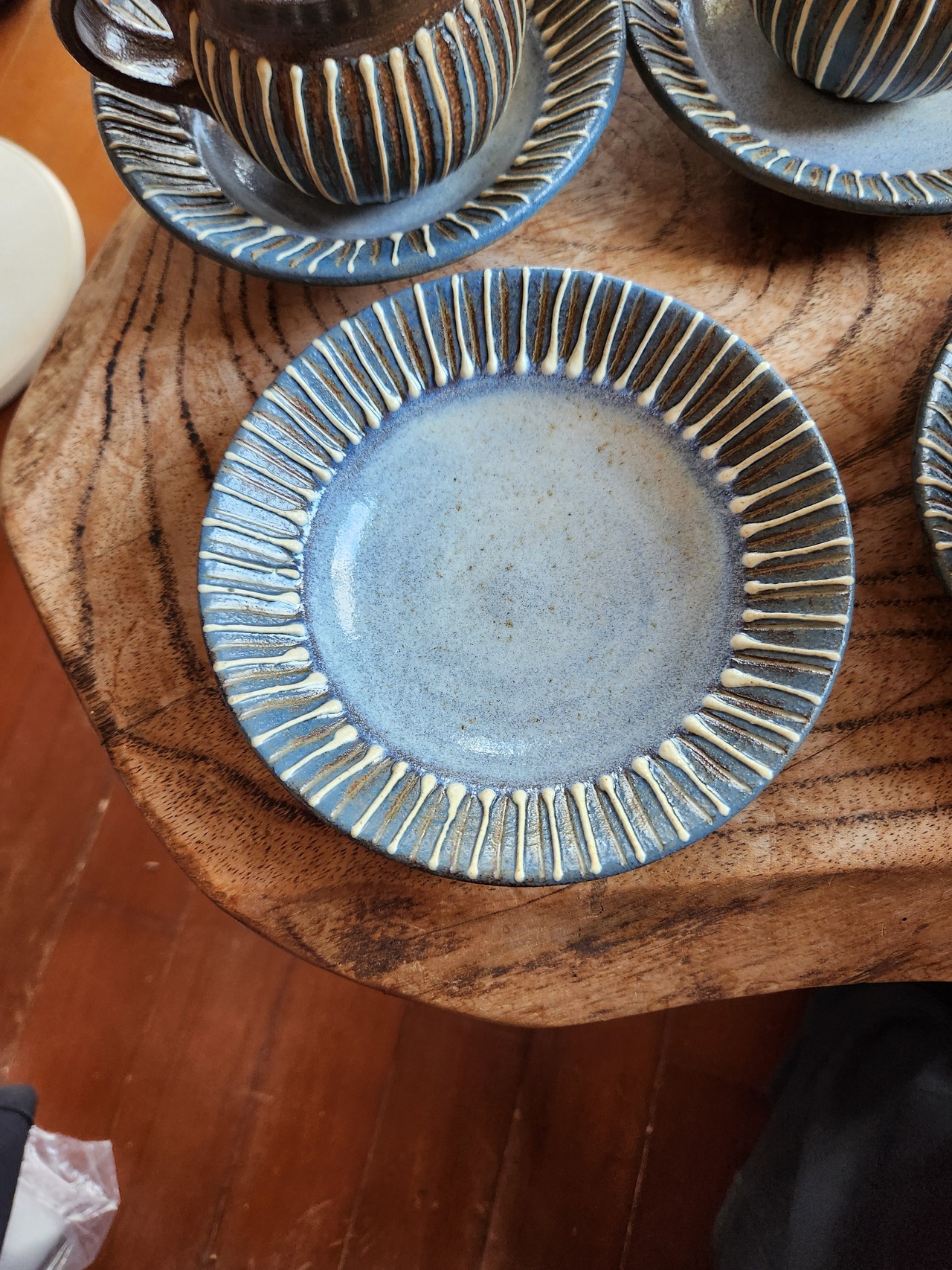 カップとソーサーの内側はサトウキビ灰でこしらえた白釉を施してあります