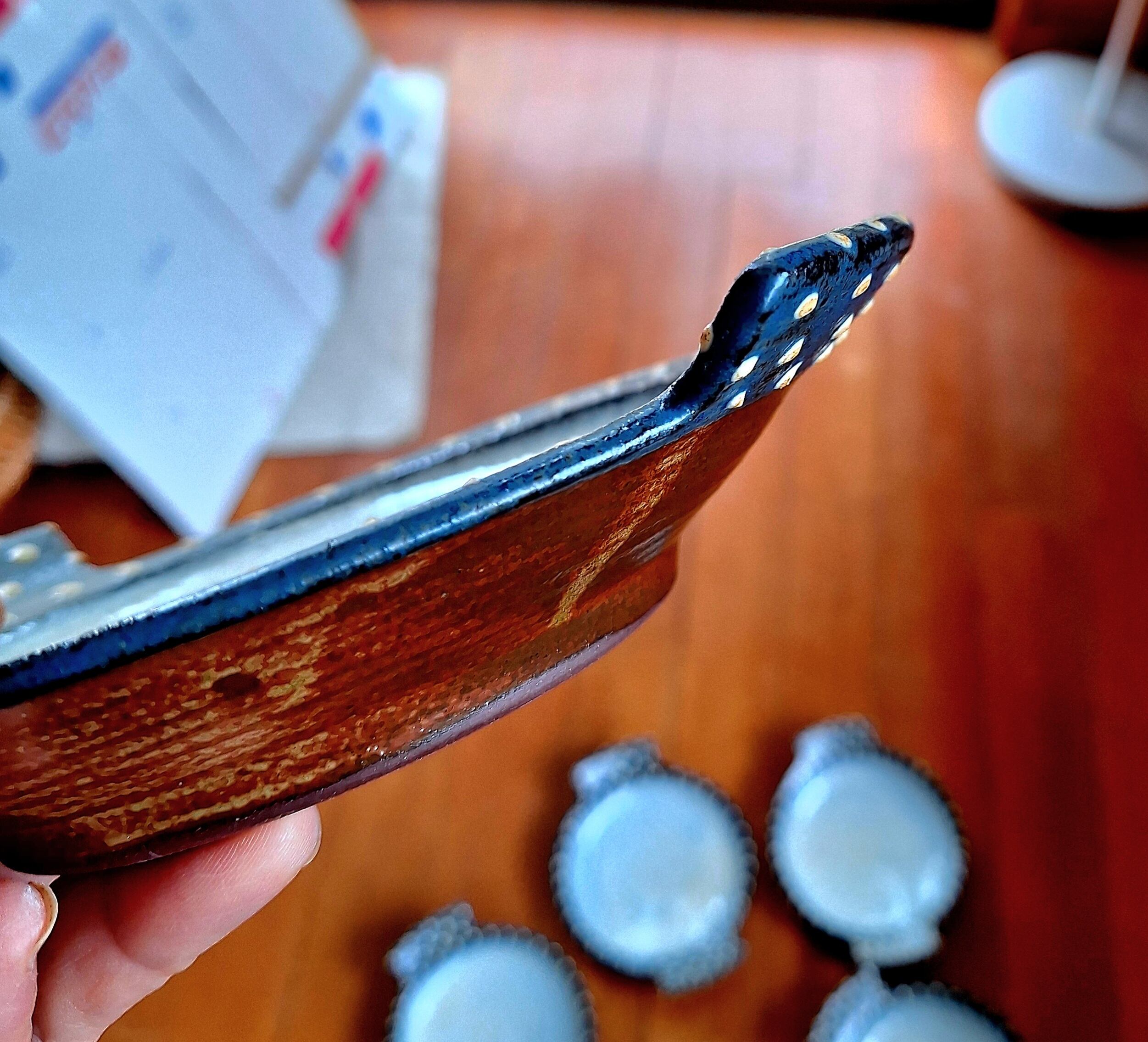 直径約15センチのお皿に手がついています