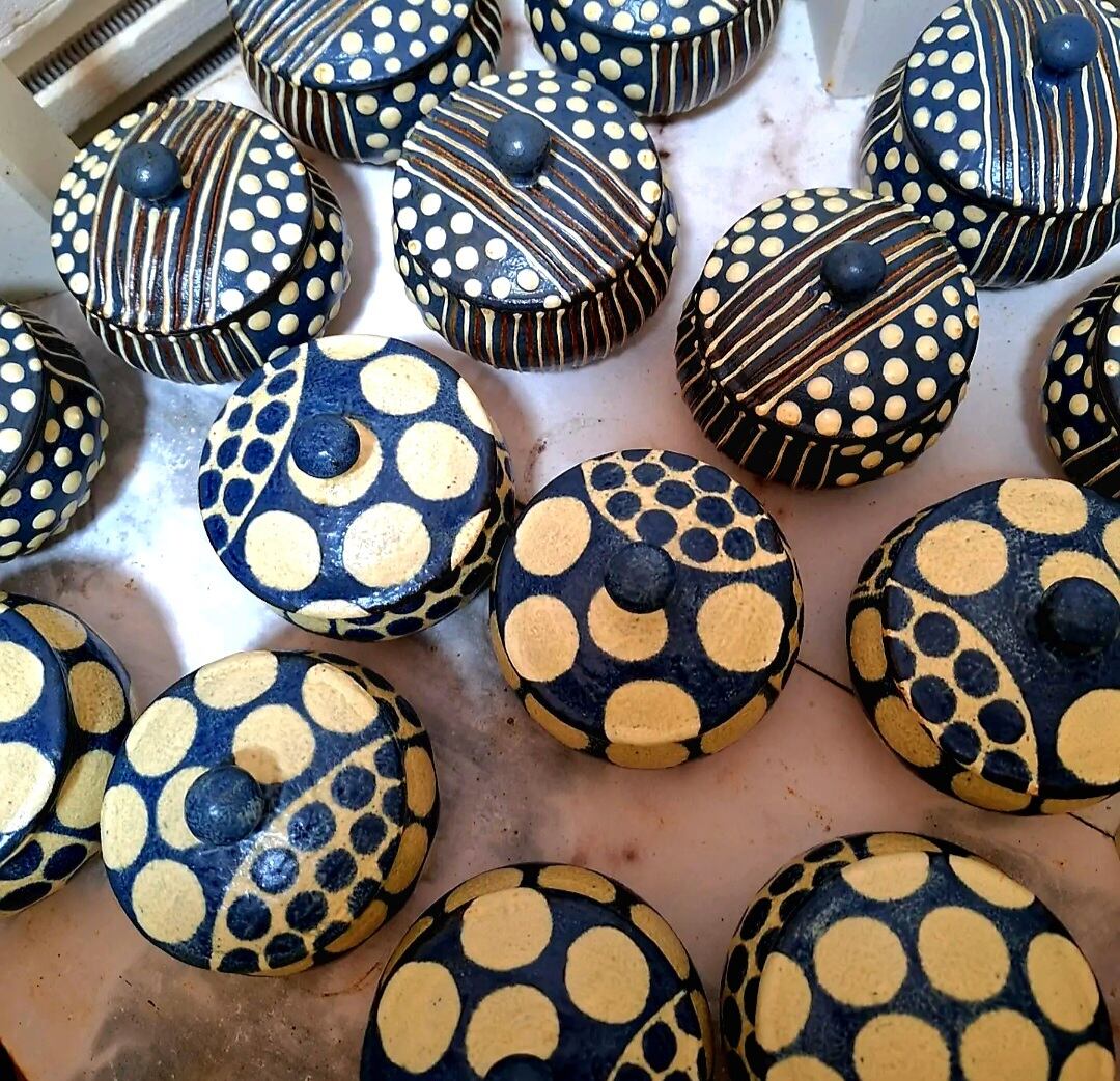 2種類のドット模様を描きました蓋にツマミが無いほうです