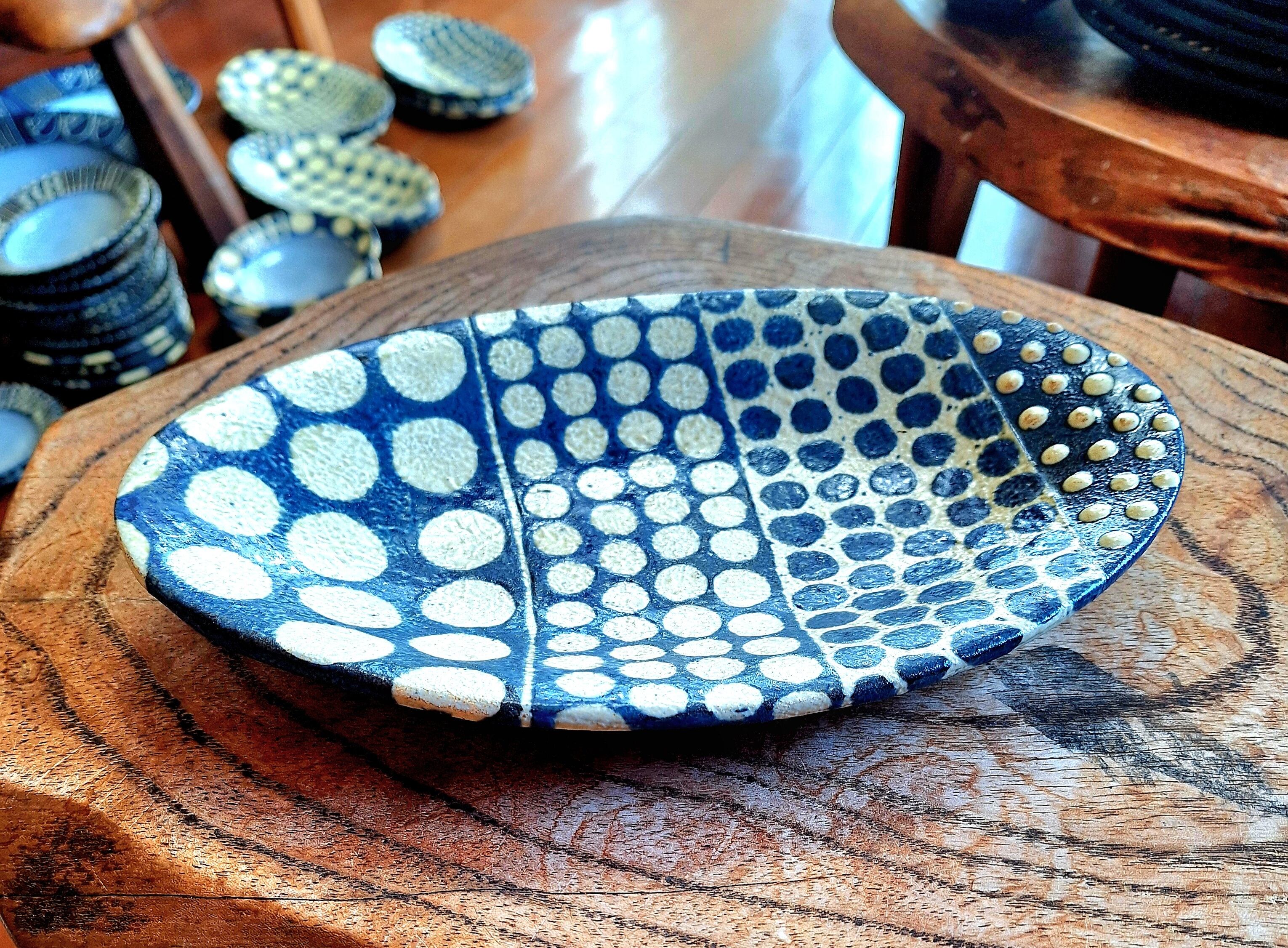 楕円(オーバル)のお皿です いろんなドットが描かれた賑やかなお皿です